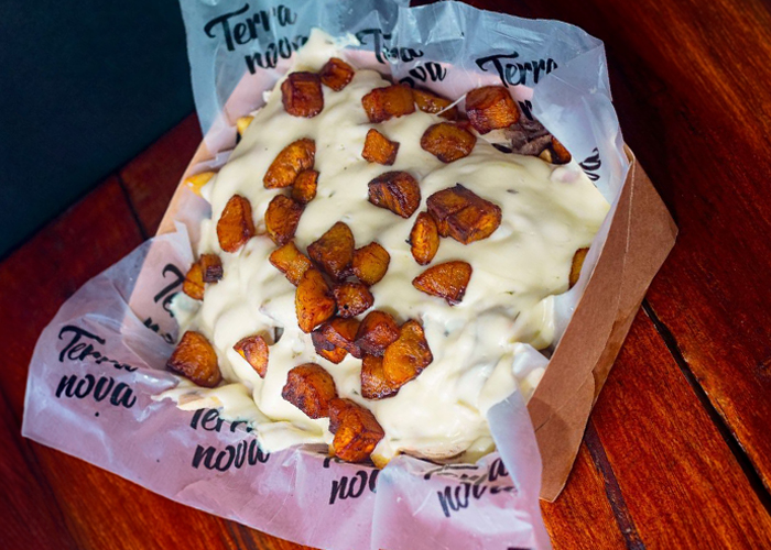 Papas, salchicha, queso fundido, pollo y carne a la BBQ, chorizo con chimichurri y costilla con guacamole.
